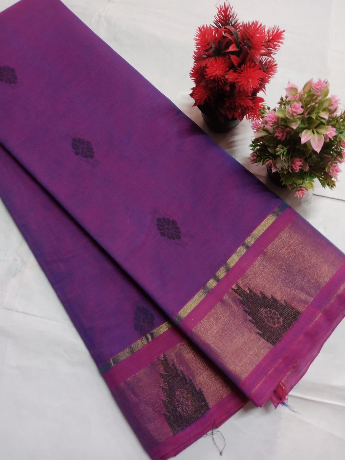 Purple Chettinadu Self Cotton Saree, Soft, Formal Wear, Festive Wear, Elegant, Blouse attached Perfect for Gifting